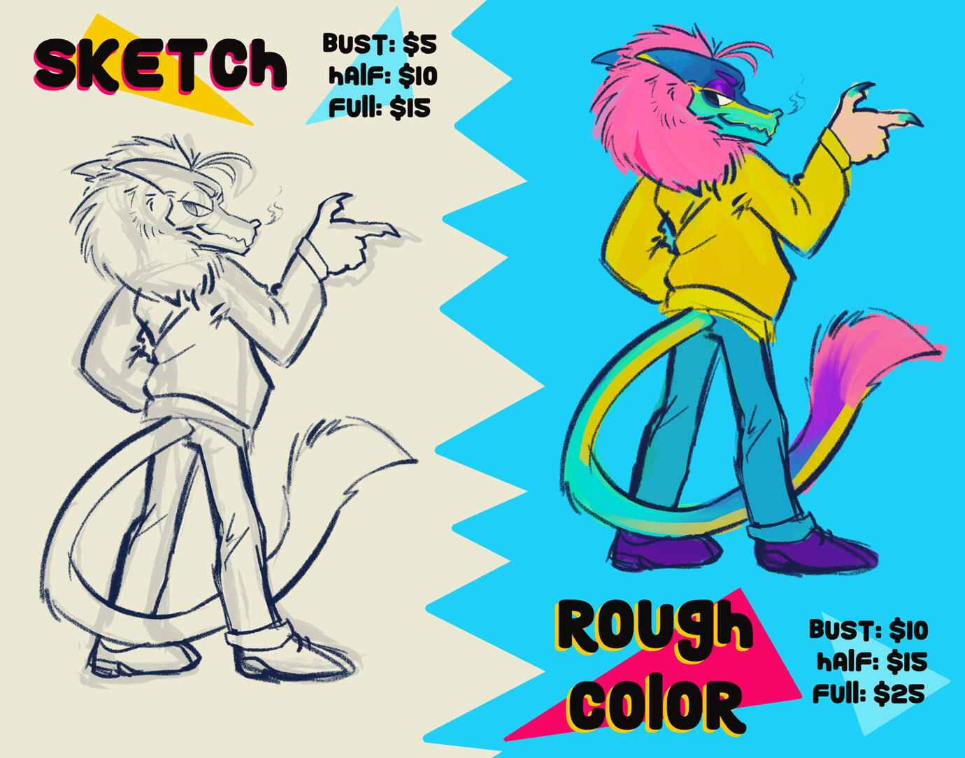 Feel free to contact me through my socials, by email, in person or via messenger pigeon at your leisure if you wish to discuss a commission with yours truly. The sheets below show pricing for standard digital commissions, but be sure to reach out if you have something else in mind!